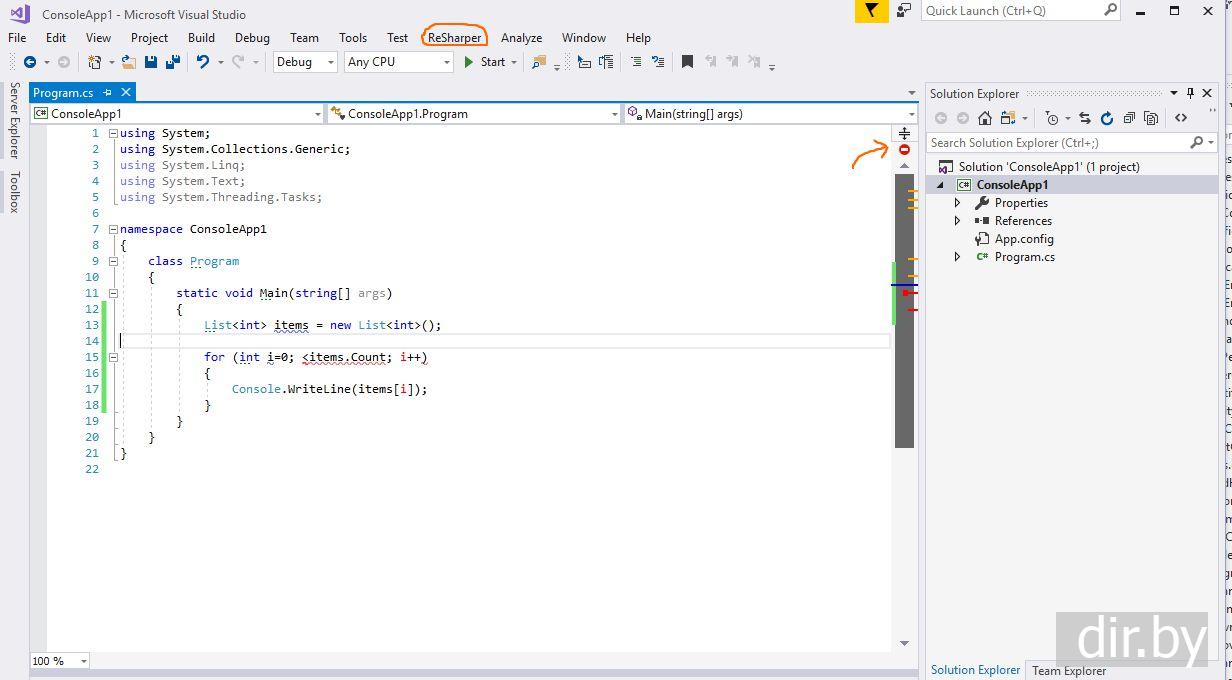 Возможности ReSharper (JetBrains) для Visual Studio 2017 (C# приложение)