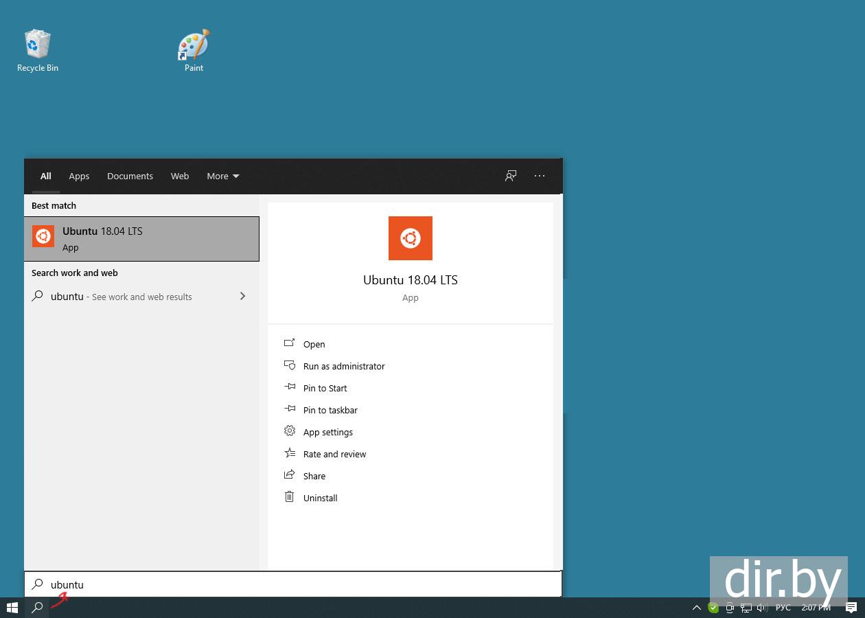Скачиаем и устанавливаем Ubuntu (in console) in Windows 10