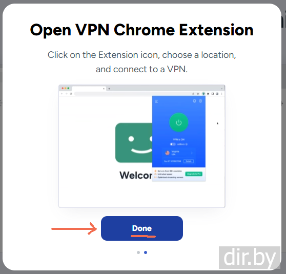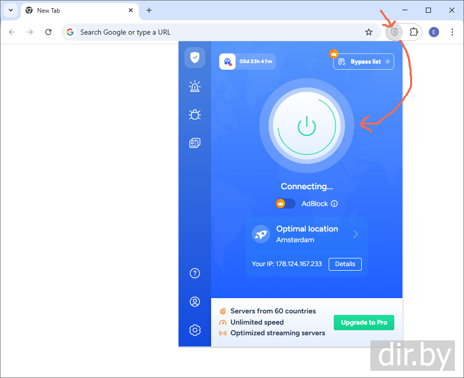Step 3. Making sure that the VPN is always visible in Google Chrome (we see the status of the VPN working or not)