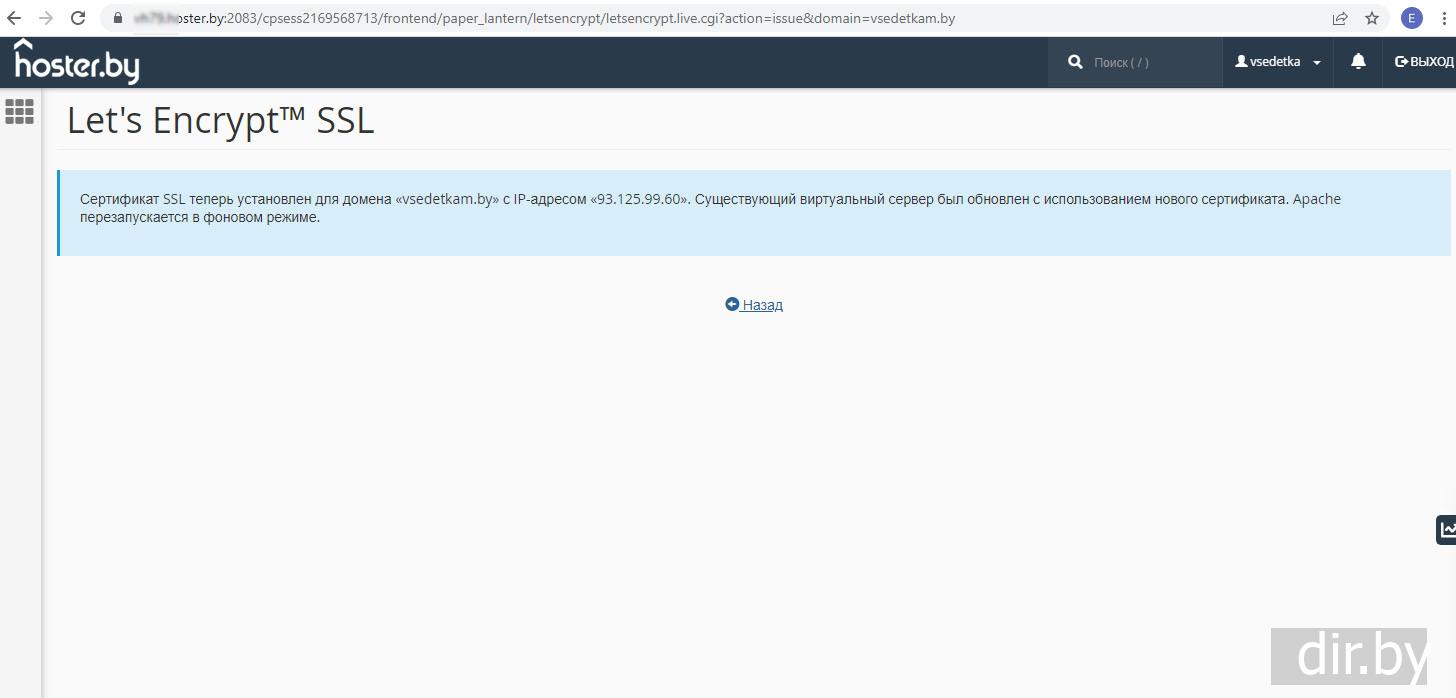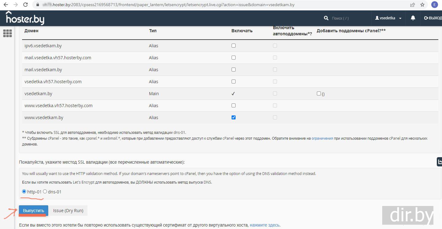 cPanel - настройка сертификата Let’s Encrypt (UNIX-хостинг)