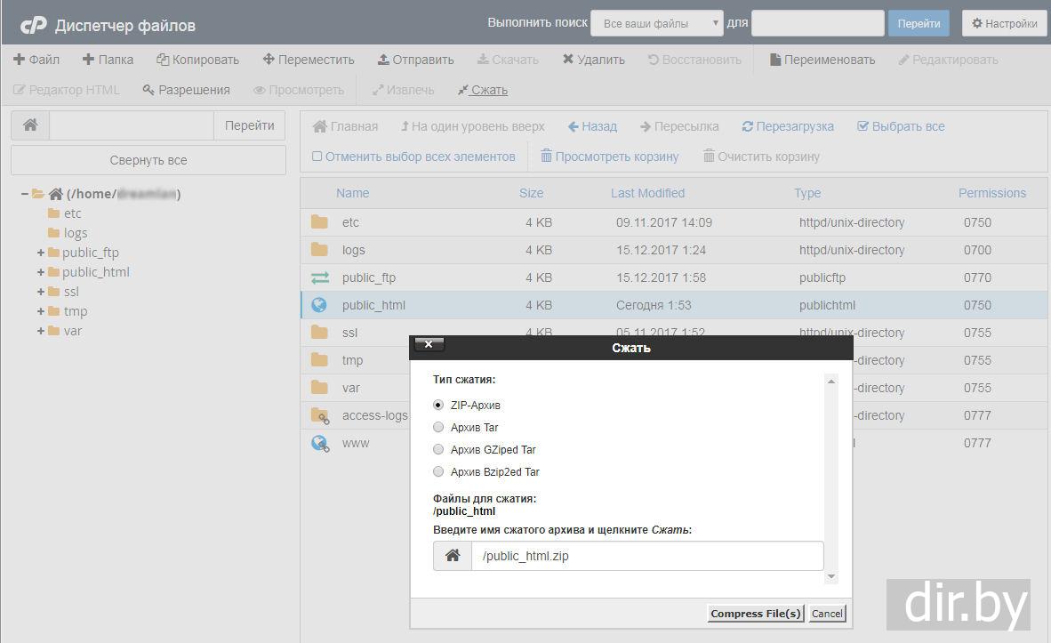 cPanel - сохранение копии сайта (файлов)