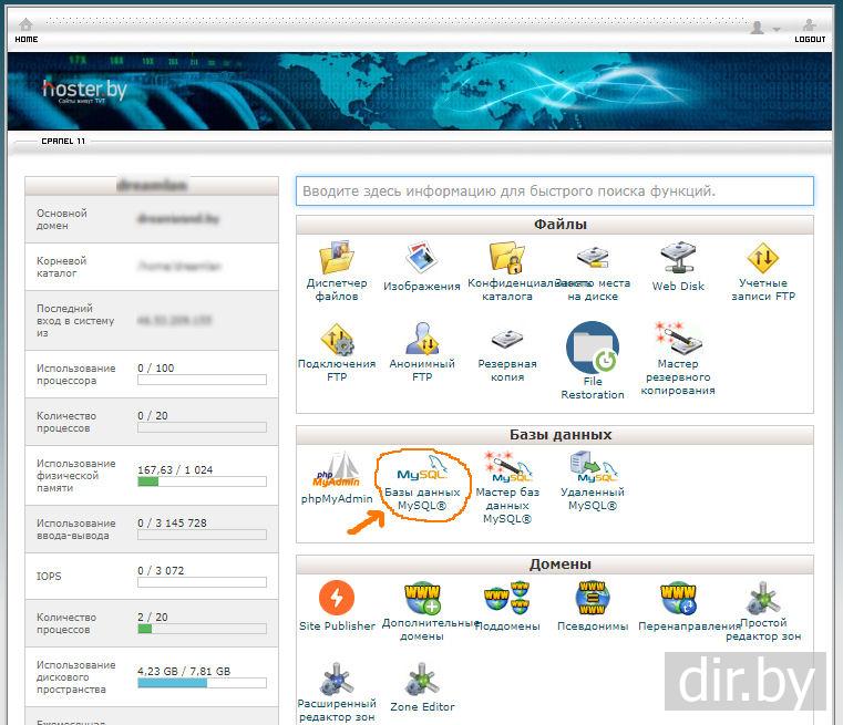 cPanel - создание базы данных