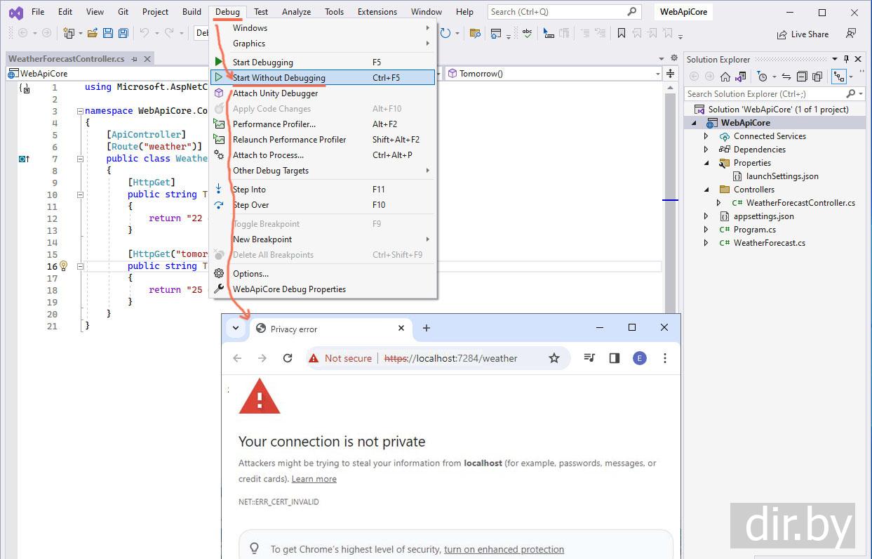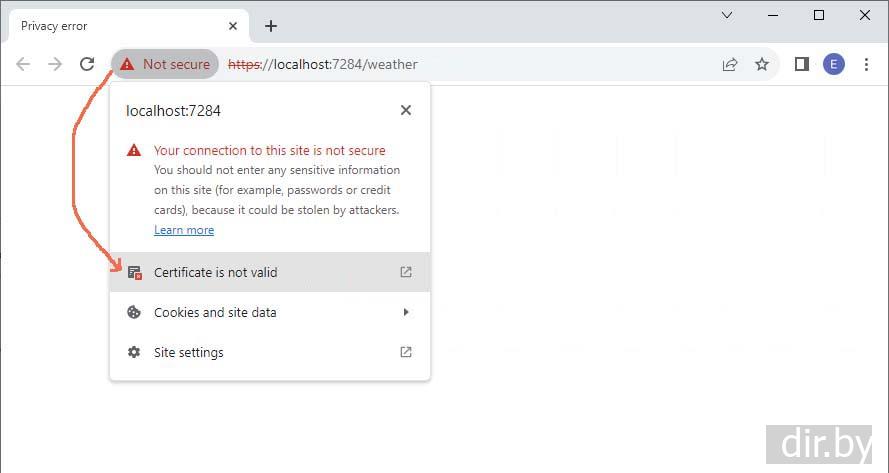 Error "Your connection isn’t private. Attackers might be trying to steal your information from (for example, passwords, messages, or credit cards). NET::ERR_CERT_INVALID" | .NET Core Web API application to C#