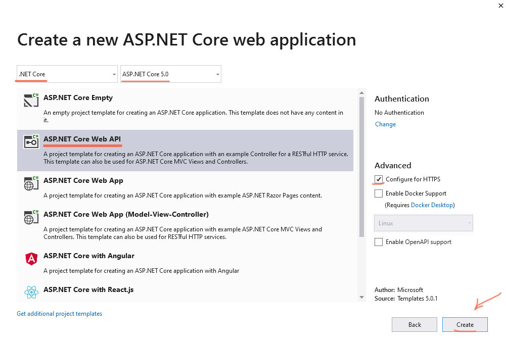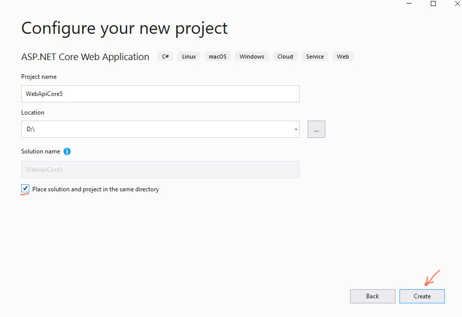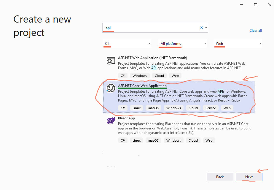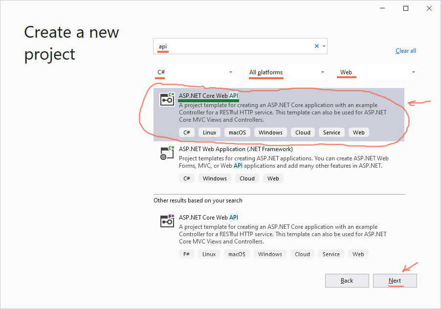 Create a new .NET Core Web API application on C#