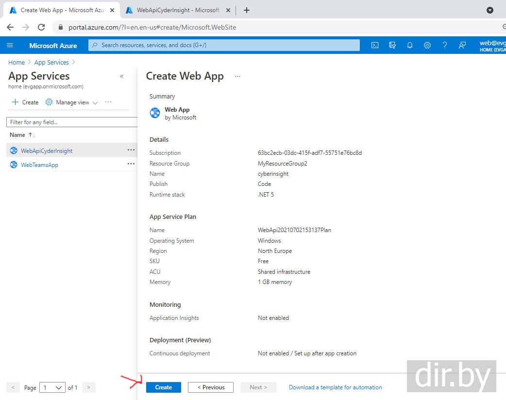 Приложение .Net Core 5 Web Api делаем publish в → Azure | используем Visual Studio 2019