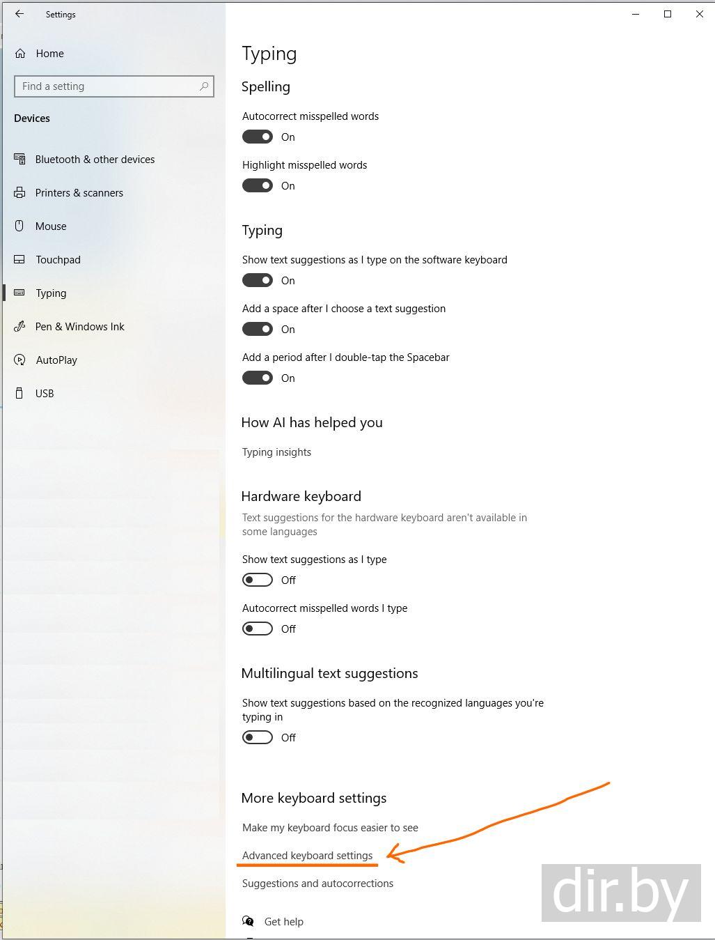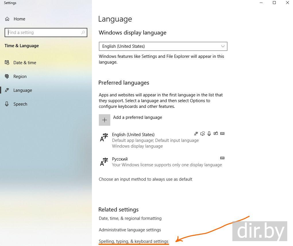 Spelling, typing, & keyboard settings
