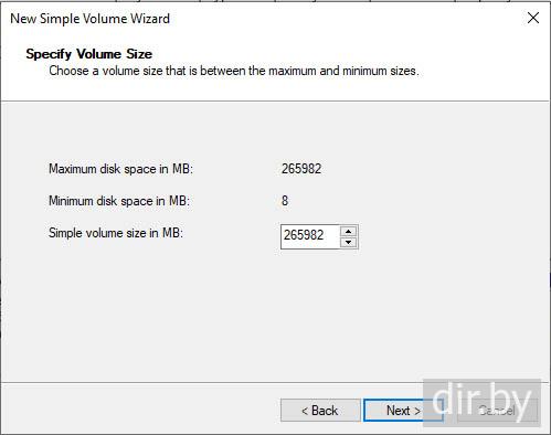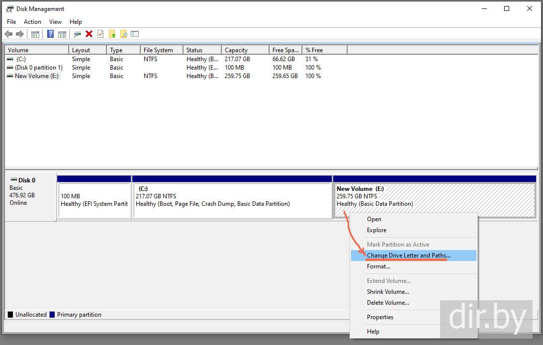 Назначем безымянной области с размером 259 gb название E