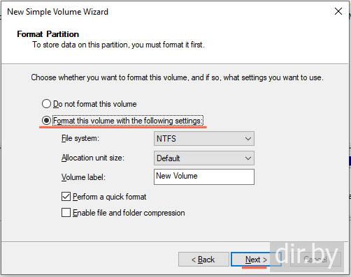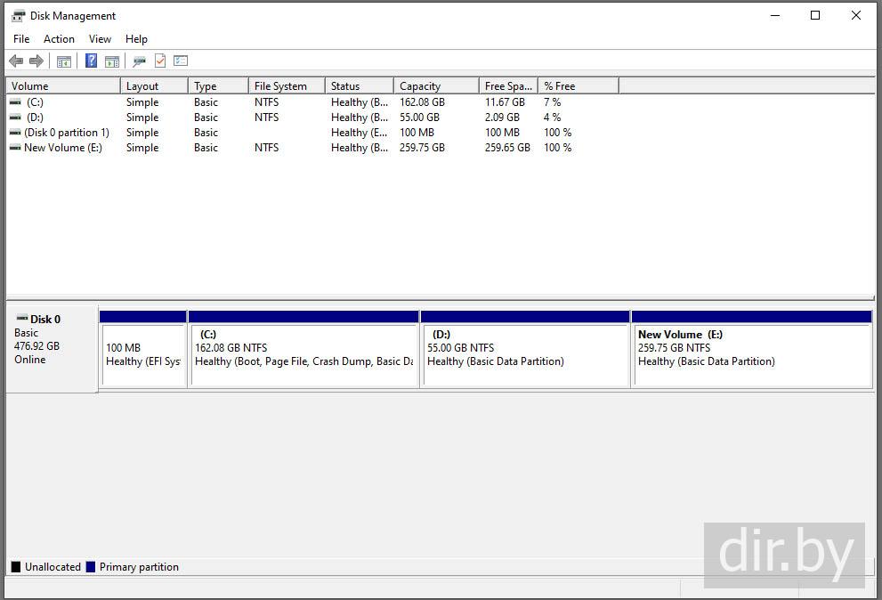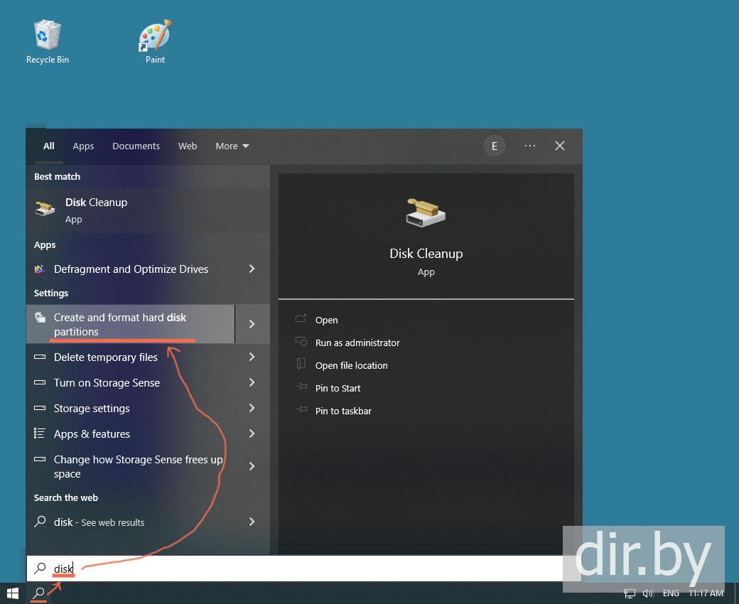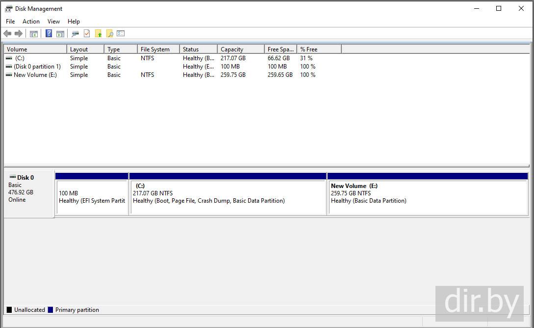 системную программу "Create and Format Hard Disk Partitions"
