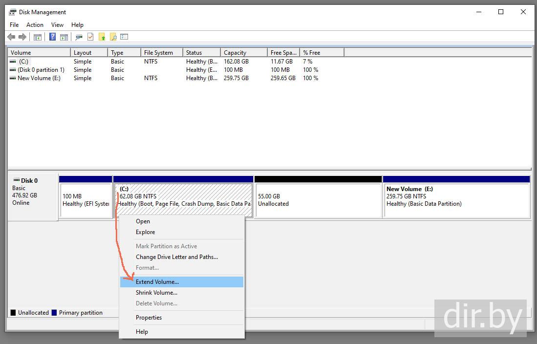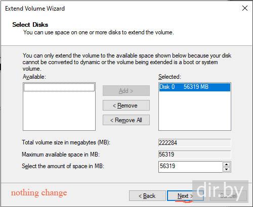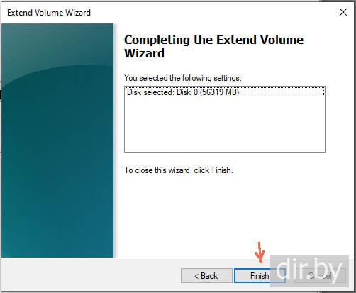 Я буду расширять диск C на 55 gb