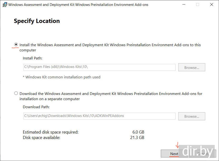 Скачиваем и устанавливаем программу Download the Windows PE add-on for the Windows ADK