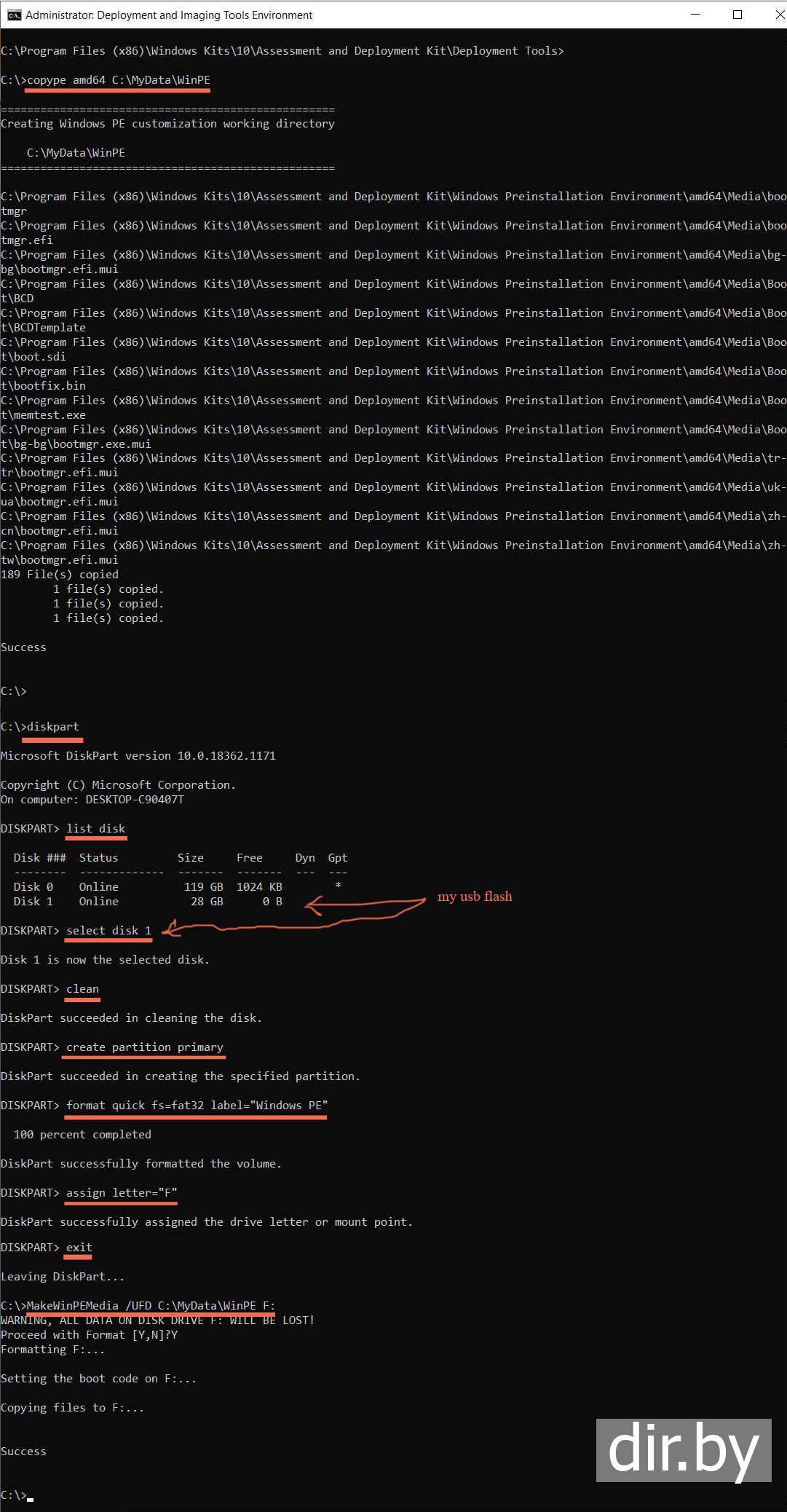 copype amd64 C:\MyData\WinPE