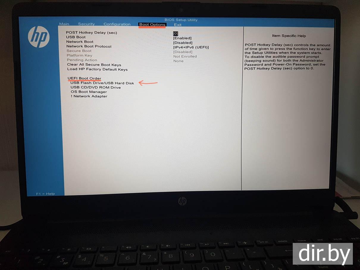Меняем bios: