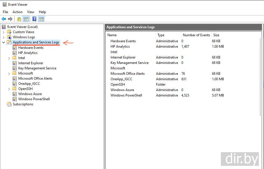 Step 1. Let's check which folders are in Event Viewer