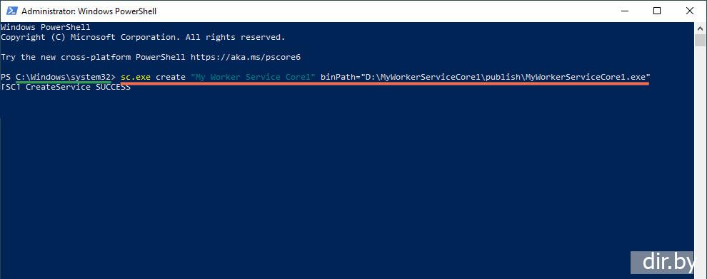 sc.exe create "My Worker Service Core1" binPath="D:\MyWorkerServiceCore1\publish\MyWorkerServiceCore1.exe"