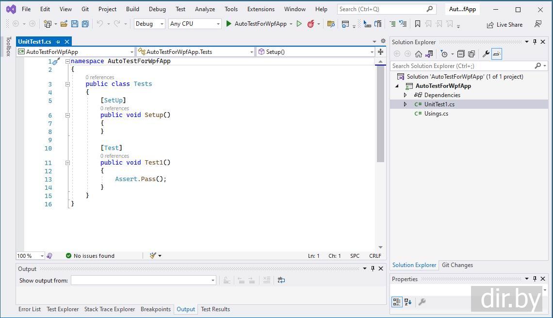 Шаг 2. Создаем новый проект с типом NUnit тест