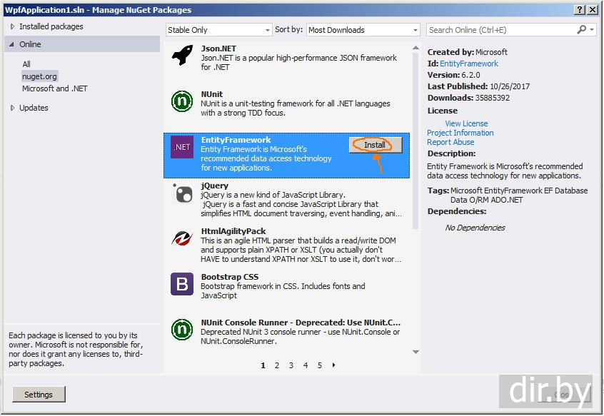 Шаг 2. Добавляем библиотеку Entity Framework используя NuGet