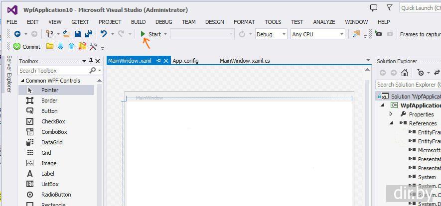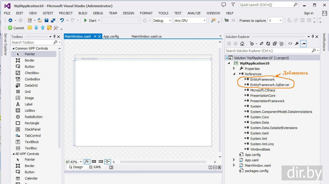В файл App.config добавились новые строчки выделенные зеленым цветом