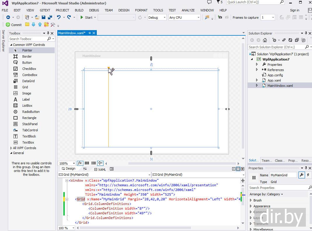Как добавить RowDefinition, ColumnDefinition в Grid (мышкой в XAML design editor) | C# WPF приложение
