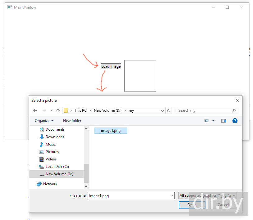 ClickLoadImage показывает системное окно для выбора фото с компьютера