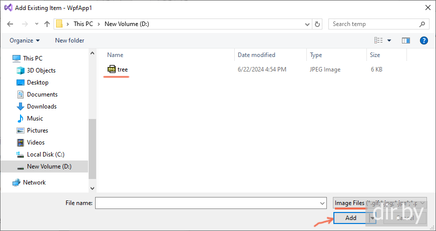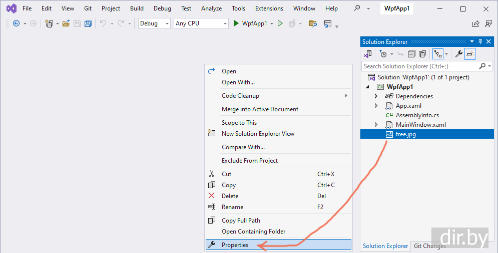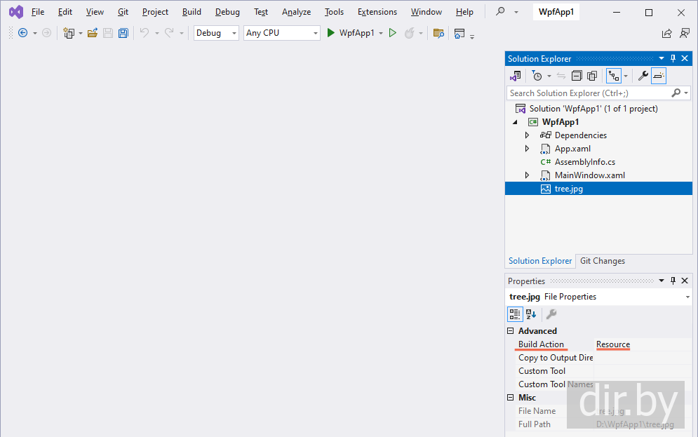 Добавим картинку в проект и помечаем как Resource: