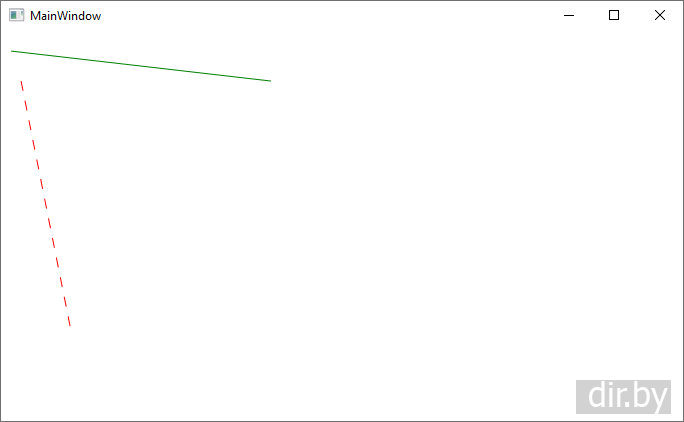 <Line X1="20" Y1="50" X2="70" Y2="300" Stroke="Red" StrokeDashArray="10 10" />