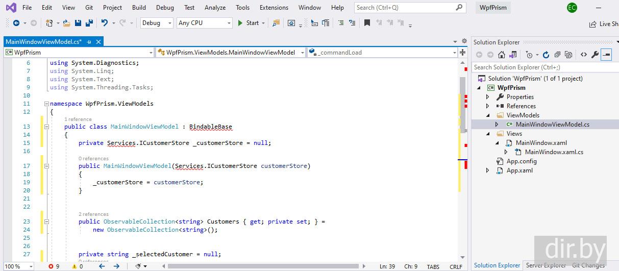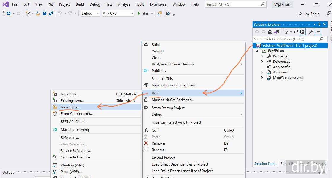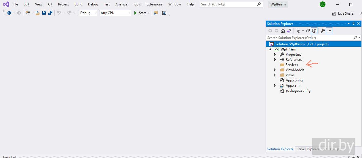 Создаем новое WPF приложение с Prism Unity (разделение проекта на папки Services, Views, ViewModels) | C#