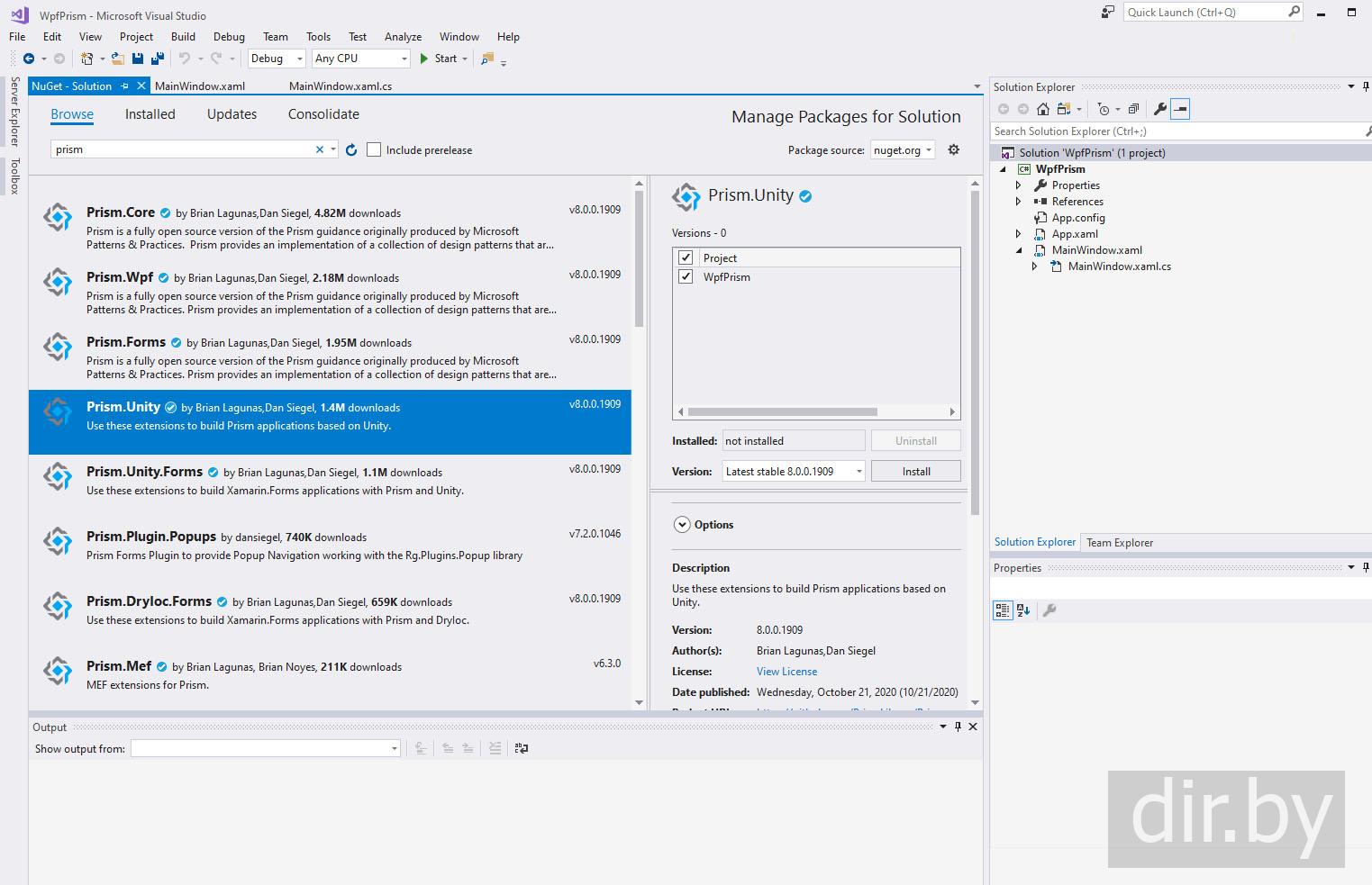 Шаг 3. Добавляем NuGet package Prism.Unity