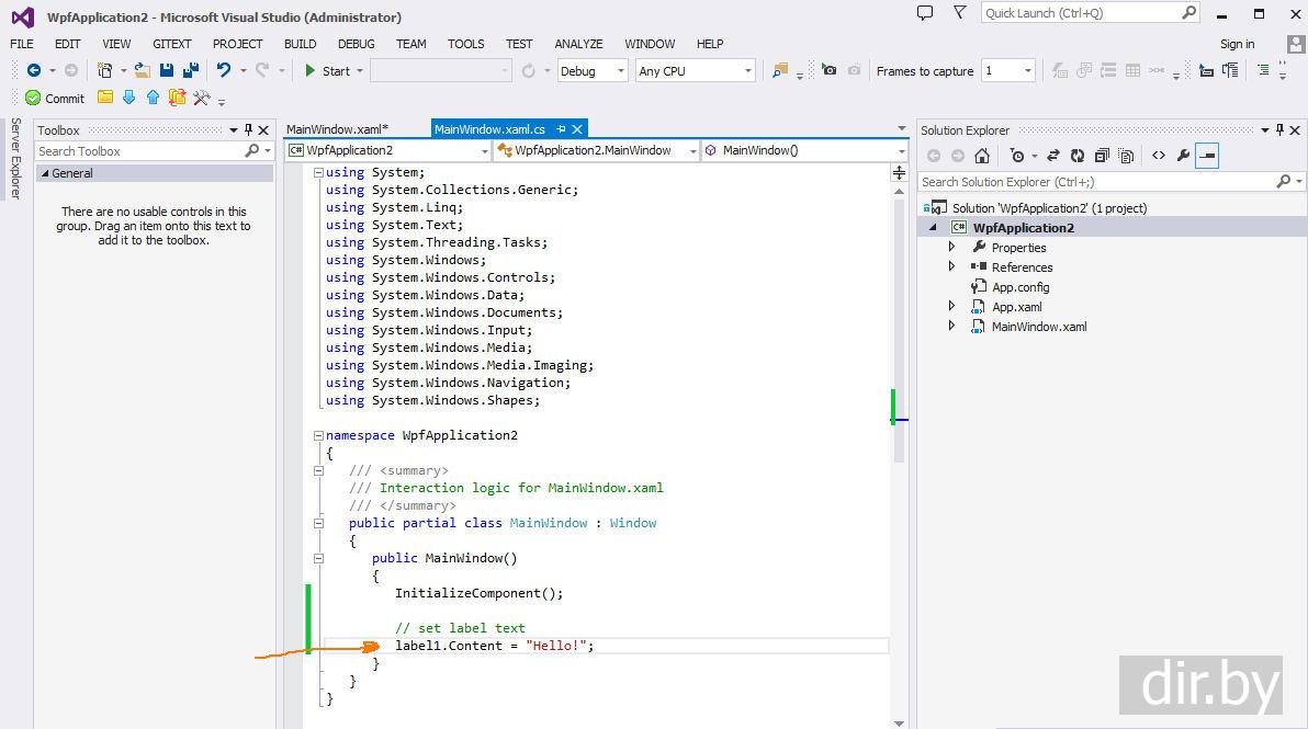 Пример "Устанавливаем текст в Label" через c# код | WPF приложение