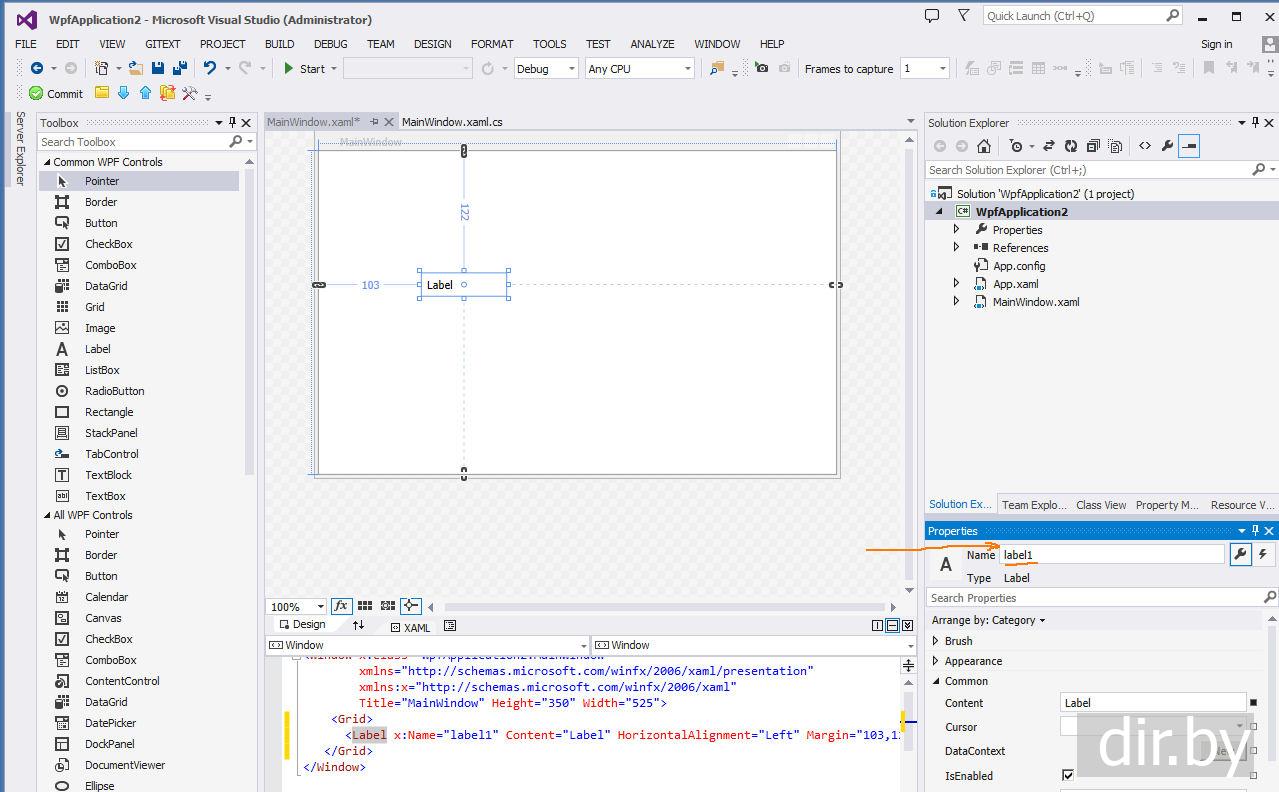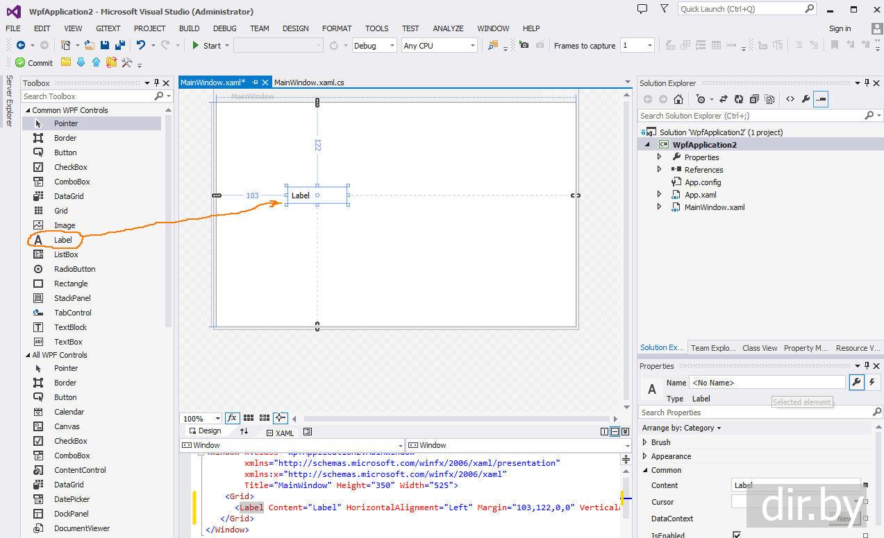 Пример "Устанавливаем текст в Label" через c# код | WPF приложение