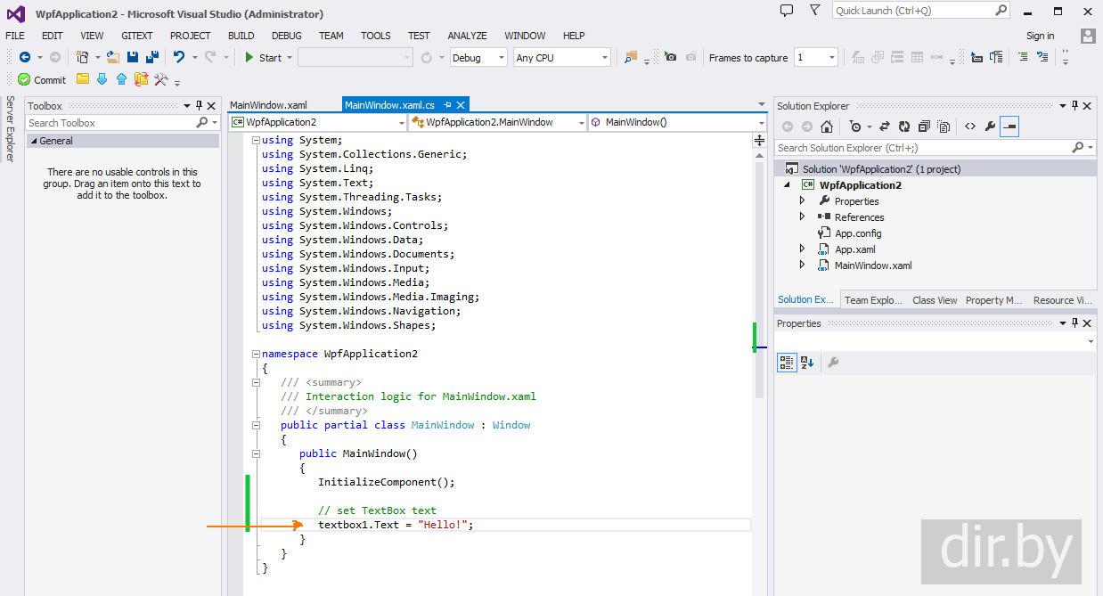 Пример "Устанавливаем текст в TextBox" через c# код | WPF приложение