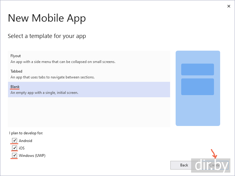 Создаем новое Xamarin приложение на компьютере Windows