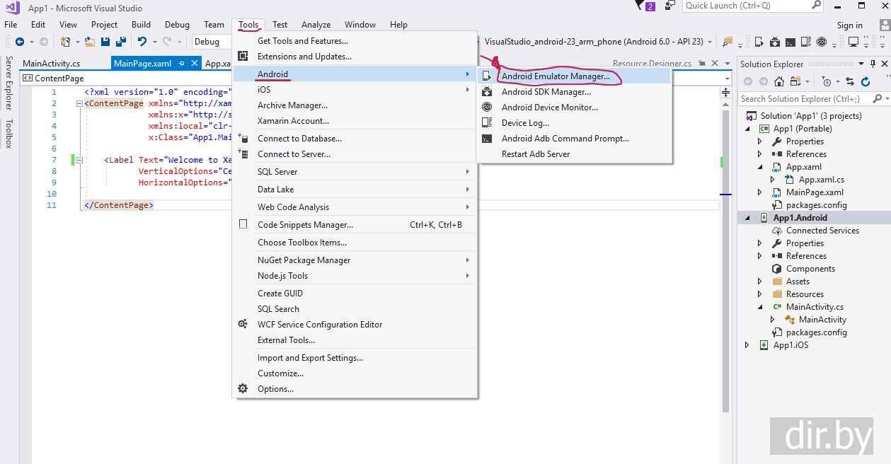 Создаем Android виртуальное устройство в Visual Studio 2017