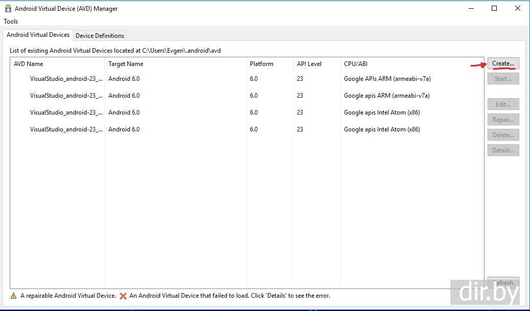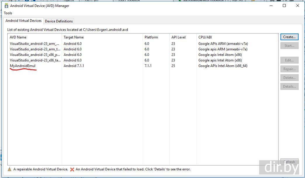 Создаем Android виртуальное устройство (AVD) в Visual Studio 2017