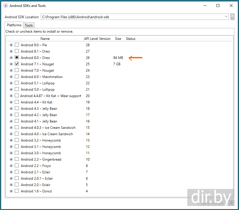 инсталируем Android 8.0 (SDK 26)