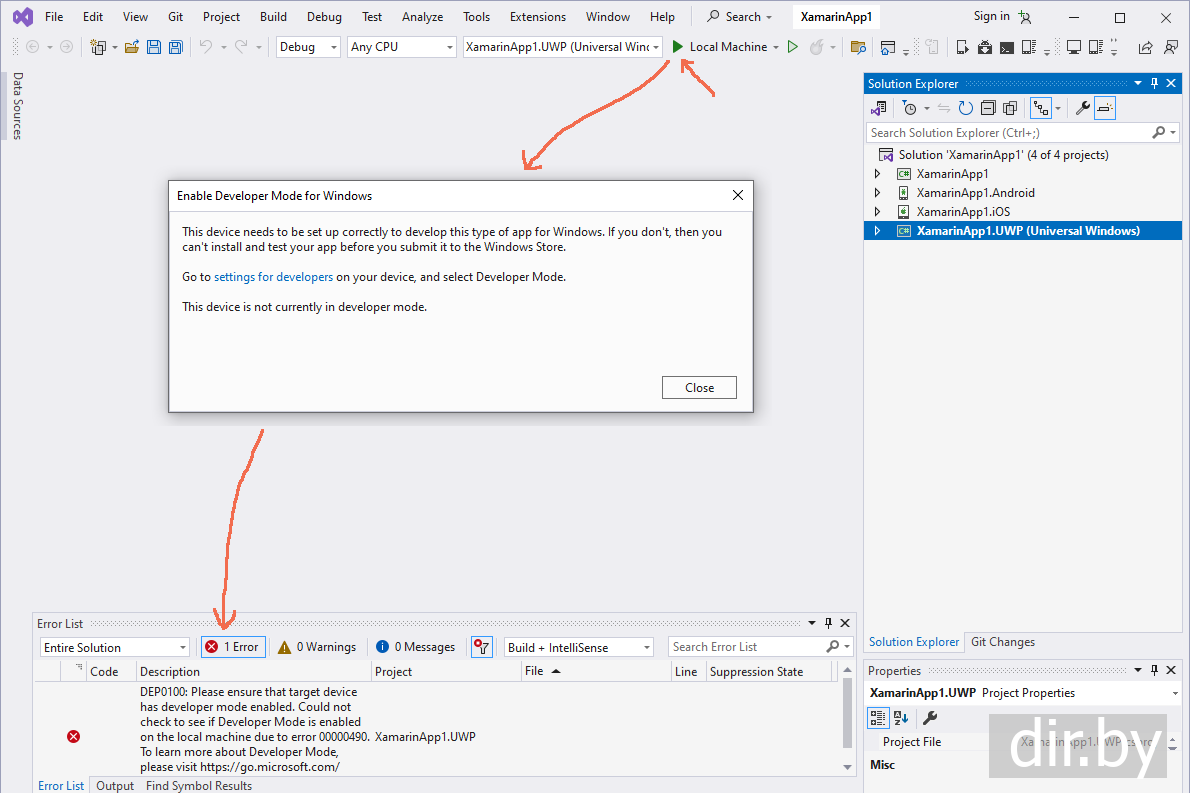 Запускаем Xamarin.UWP приложение на компьютере Windows