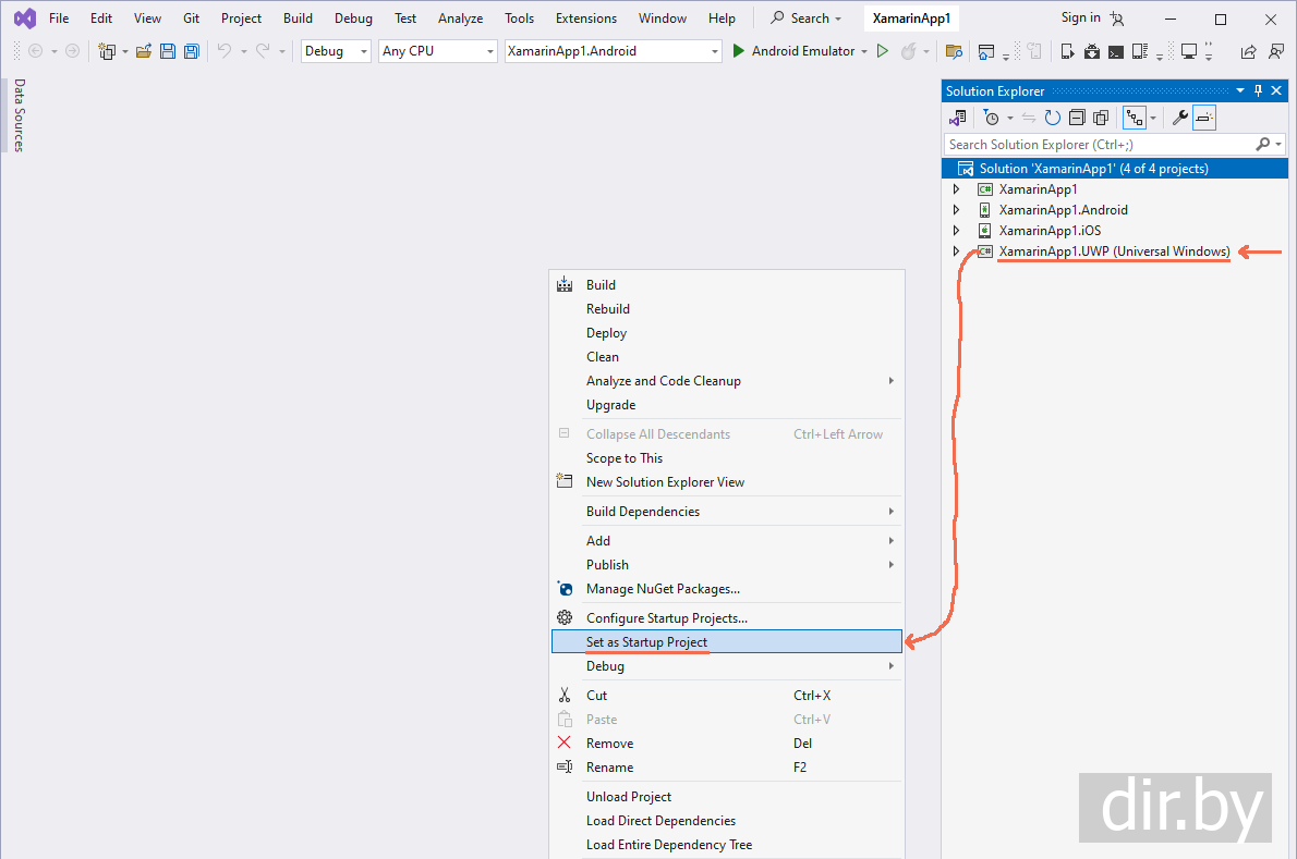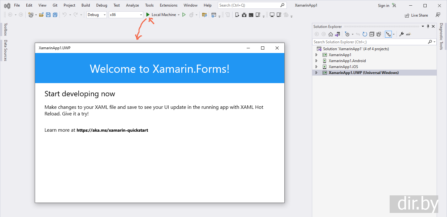 Запуск и отладка Xamarin.UWP приложения на компьютере Windows