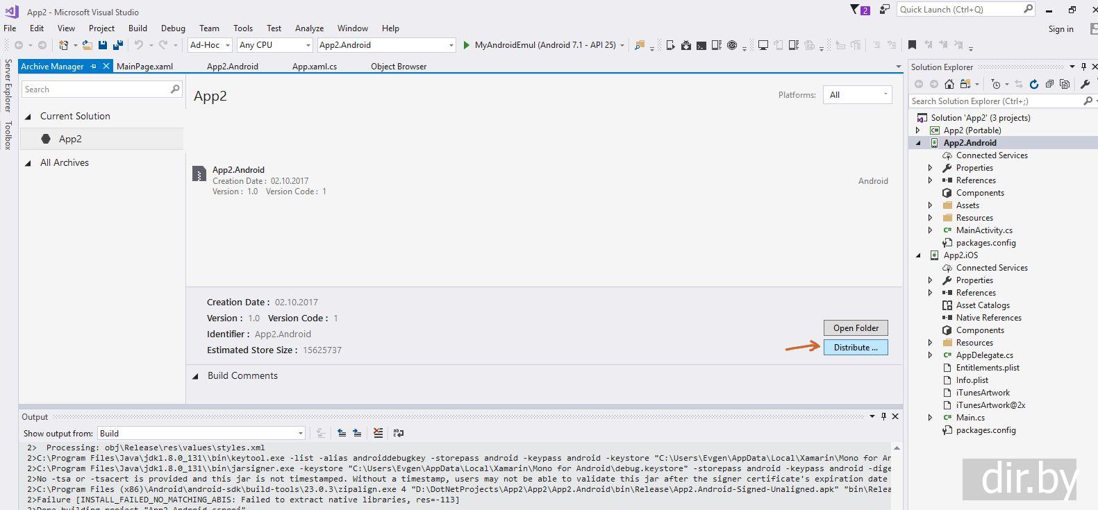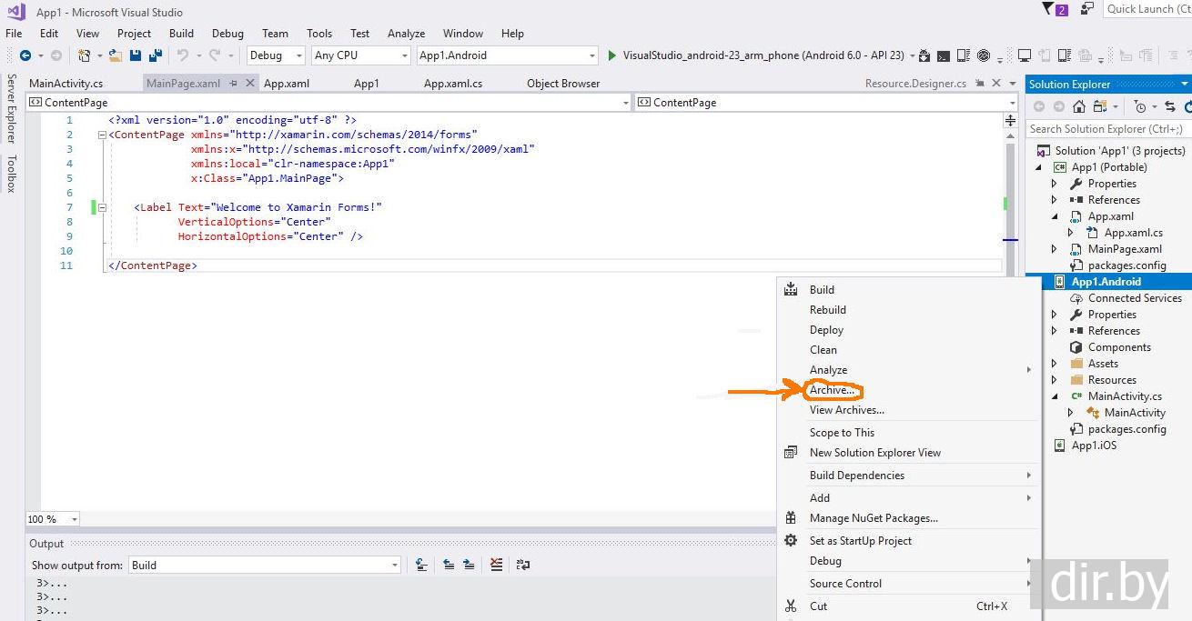 Запуск Xamarin.Android приложения на телефоне (создание apk файла)