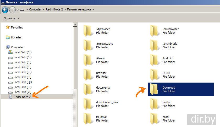 в папку "Downloads" телефона