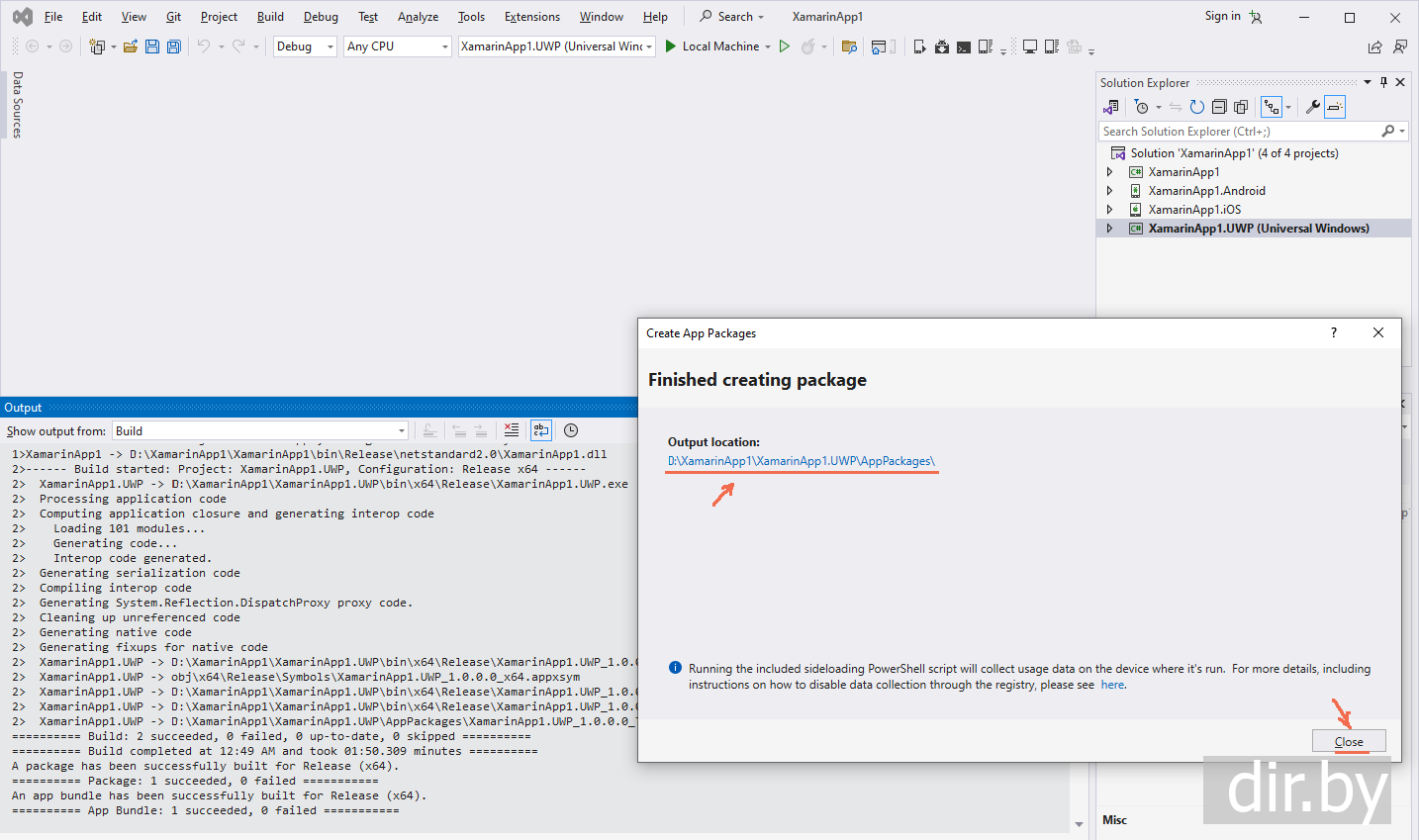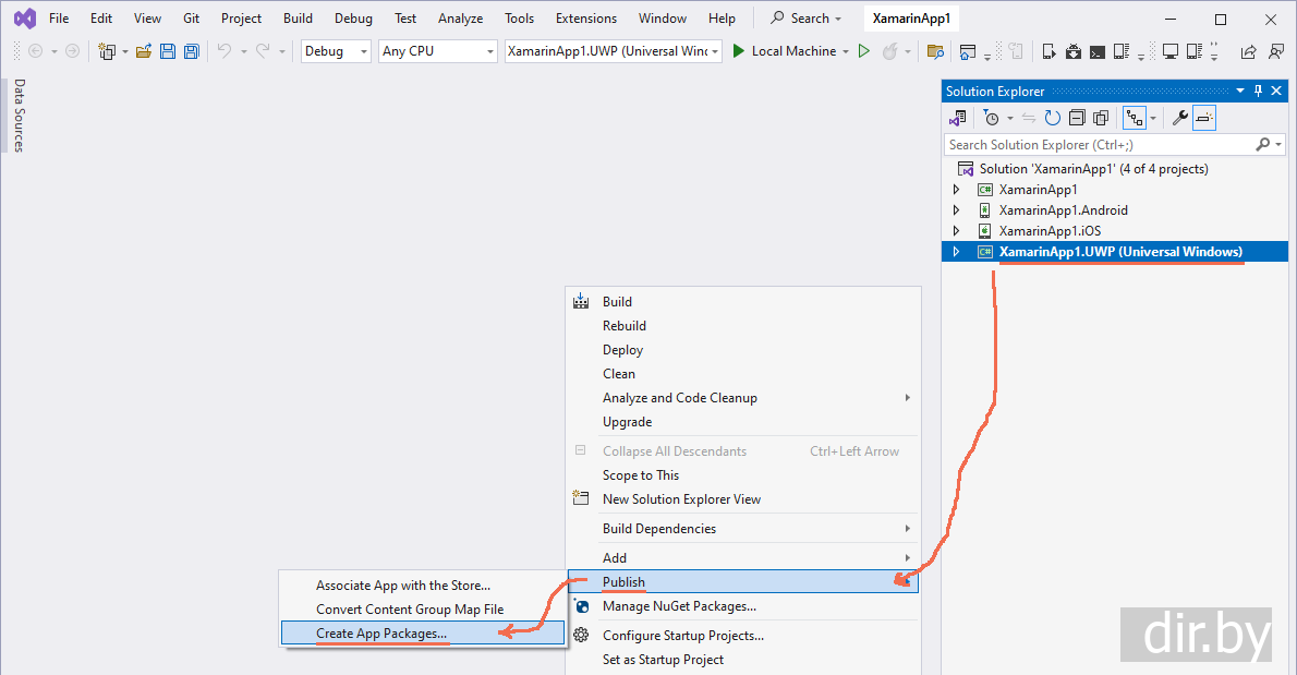 Making App Packages for Xamarin.UWP apps on a Windows computer | Run the Xamarin.UWP app using App Packages
