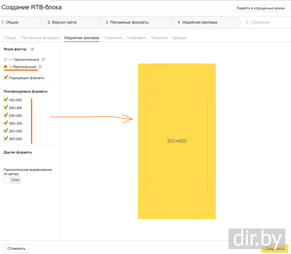 Выбираем ориентацию для рекламного блока