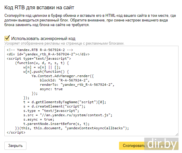 Шаг 3. Код рекламы
