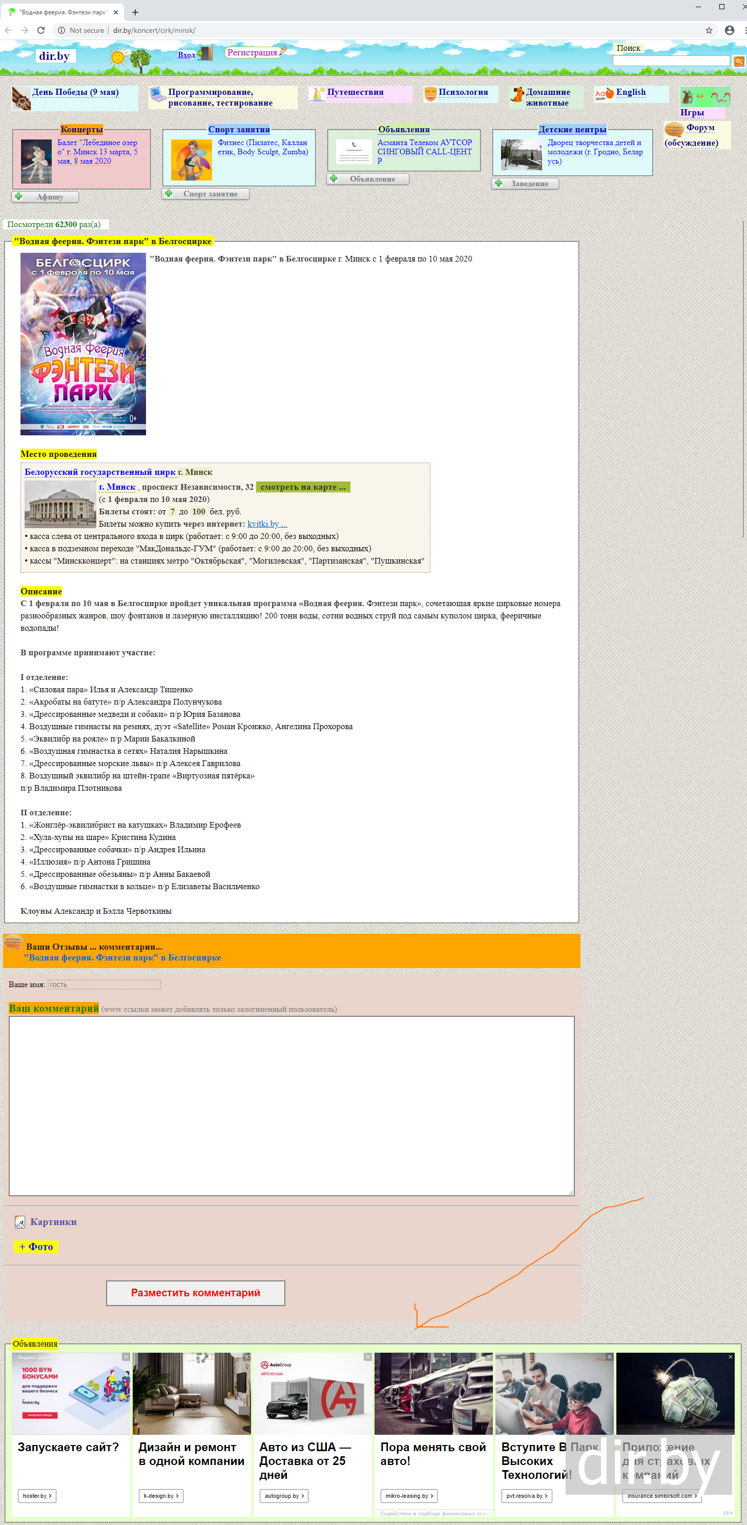 Концерты, выставки, цирки ...