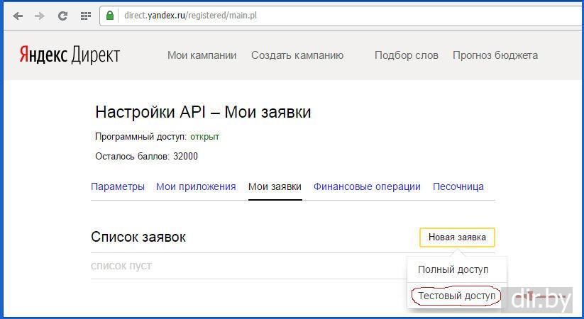Шаг 2 Заявка на доступ к API Yandex Direct