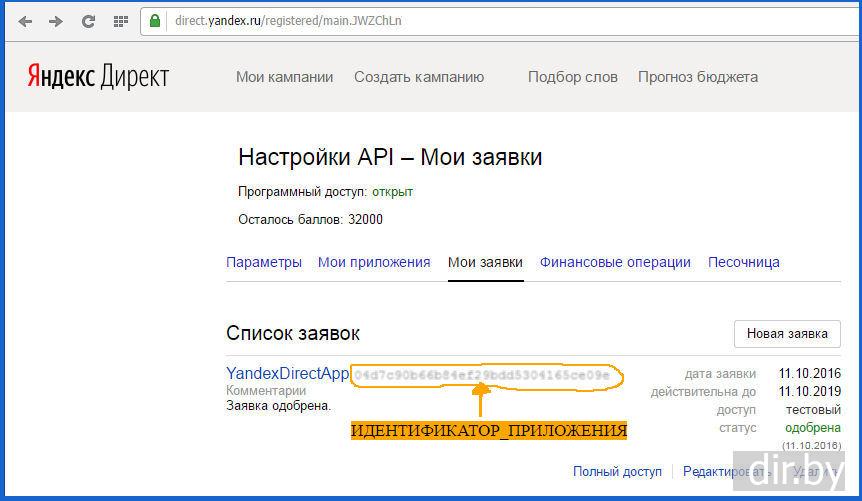 Внимание! ИДЕНТИФИКАТОР_ПРИЛОЖЕНИЯ взять из direct.yandex.ru потом нажать "Управление кампаниями с помощью API" и нажать "Мои заявки".