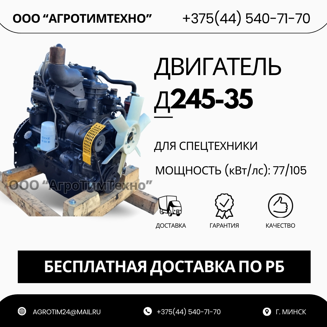 Капитальный ремонт двигателя ММЗ д245-35 для погрузчика Орел или двигатель с обменного фонда (цену на ремонт ДВС и наличие указанной модификации двигателя в ремфонде уточнять!). Забор двигателя и доставка после капитального ремонта осуществляется Исполнителем (ООО «АгроТимТехно») БЕСПЛАТНО. При наличии двигателя в обменном фонде доставка осуществляется в течение 1-2 дней после оплаты.