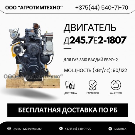 Капитальный ремонт двигателя ММЗ Д245.7е2-1807 для газ 3310 валдай евро-2 или двигатель с обменного фонда (цену на ремонт ДВС и наличие указанной модификации двигателя в ремфонде уточнять!). Забор двигателя и доставка после капитального ремонта осуществляется Исполнителем (ООО «АгроТимТехно») БЕСПЛАТНО. При наличии двигателя в обменном фонде доставка осуществляется в течение 1-2 дней после оплаты.