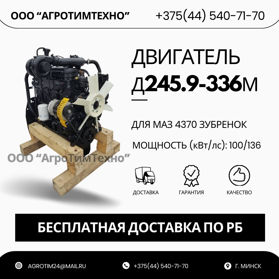 Капитальный ремонт двигателя ММЗ Д245.9-336м для маз 4370 зубренок или двигатель с обменного фонда (цену на ремонт ДВС и наличие указанной модификации двигателя в ремфонде уточнять!). Забор двигателя и доставка после капитального ремонта осуществляется Исполнителем (ООО «АгроТимТехно») БЕСПЛАТНО. При наличии двигателя в обменном фонде доставка осуществляется в течение 1-2 дней после оплаты.