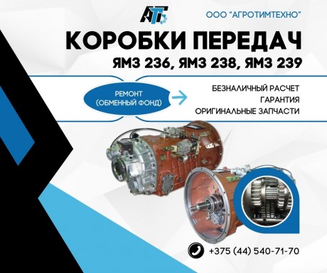 Артикул: ЯМЗ 239. Применение: Автомобили МАЗ;Автомобили КрАЗ;Автомобили «Урал»;Автомобили БЗКТ с двигателем ТМЗ;Автомобили МЗКТ. ООО «АгроТимТехно» имеет возможность предложить капитальный ремонт (ремфонд) коробок передач ЯМЗ 236, 238, 239. Ориентировочные цены уточняйте по телефону, окончательная стоимость определяется после проведения дефектовочных работ. Гарантия-6 месяцев. Безналичный расчет. При ремонте КПП ЯМЗ используются только качественные заводские запасные части. |