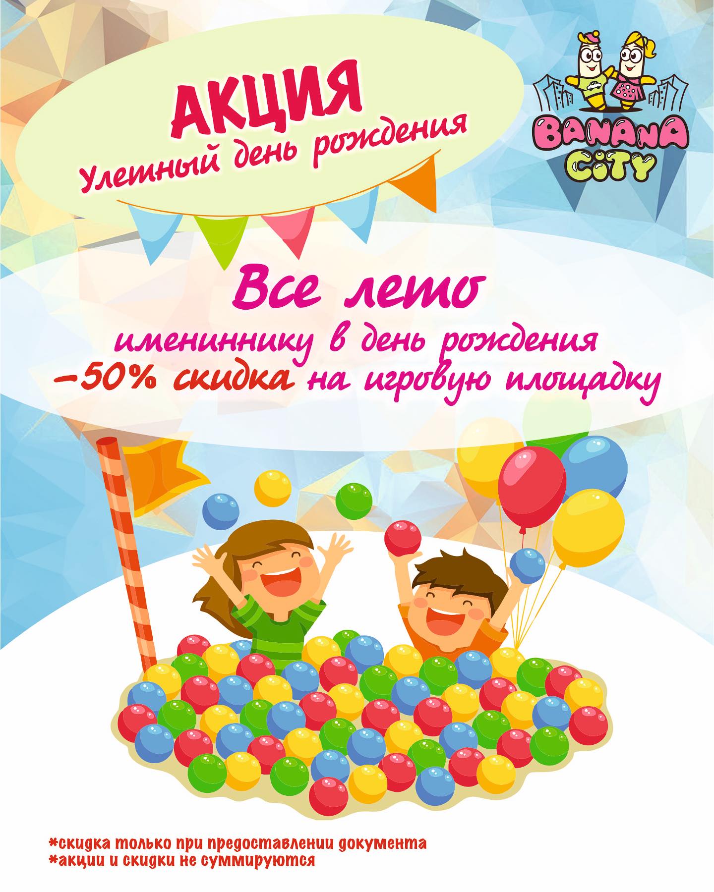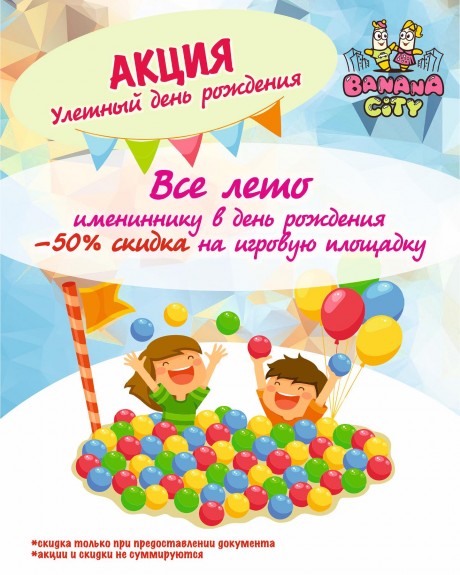 С 1 июня по 31 августа дарим скидку 50% на посещение игровой площадки для именинников!🎂✨