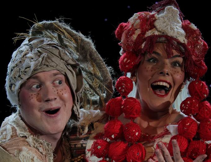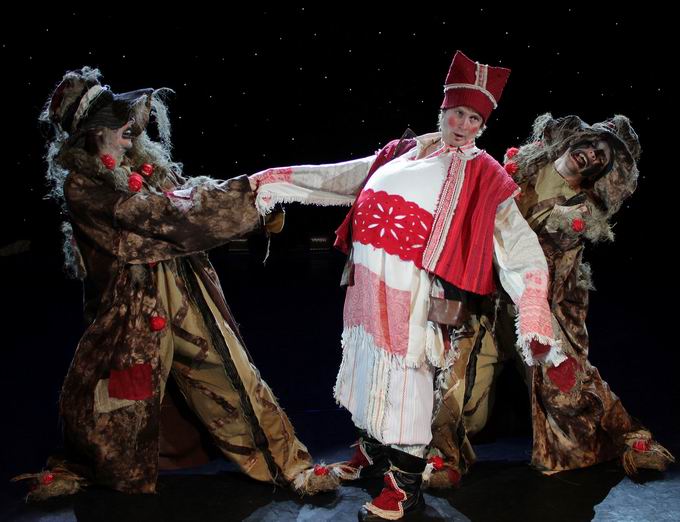 Спектакль идёт не на чистом языке, а на русско-белорусской “трасянке”, что усиливает комический эффект. Герои постоянно подтрунивают друг над другом, а когда слова теряют действенную силу, переходят к зажигательным песням.